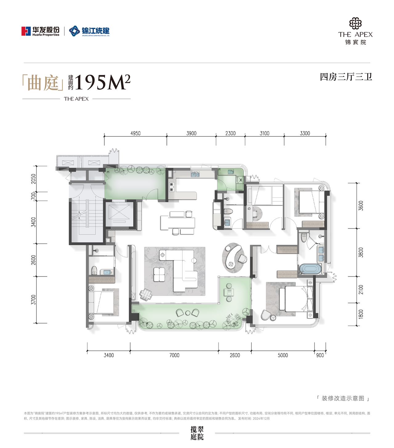 在户型设计上不仅有私梯入户、LDKB多场景空间等优质产品设计,更有大入户花园/光厅赠送,约103%的高实得率,更重要的是当属“院+境”室内外一体的多重院落体系,以及符合高净值家庭全生命周期的户型面积。