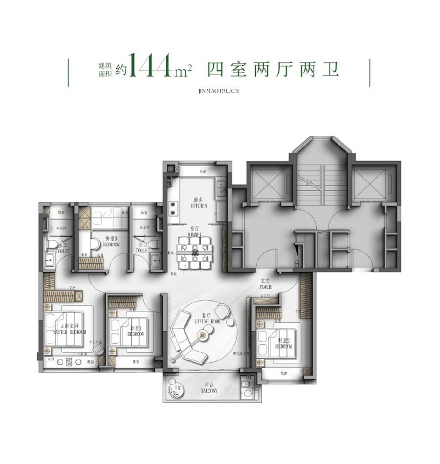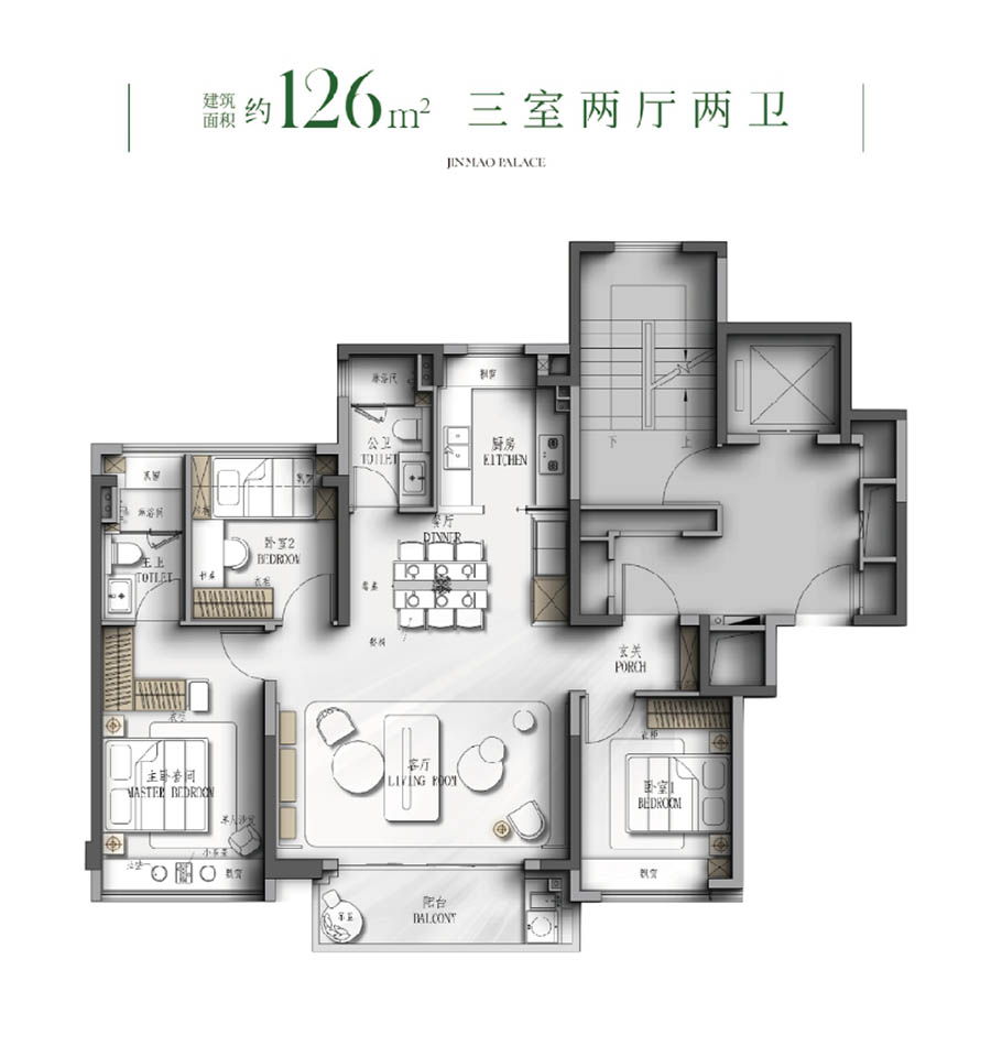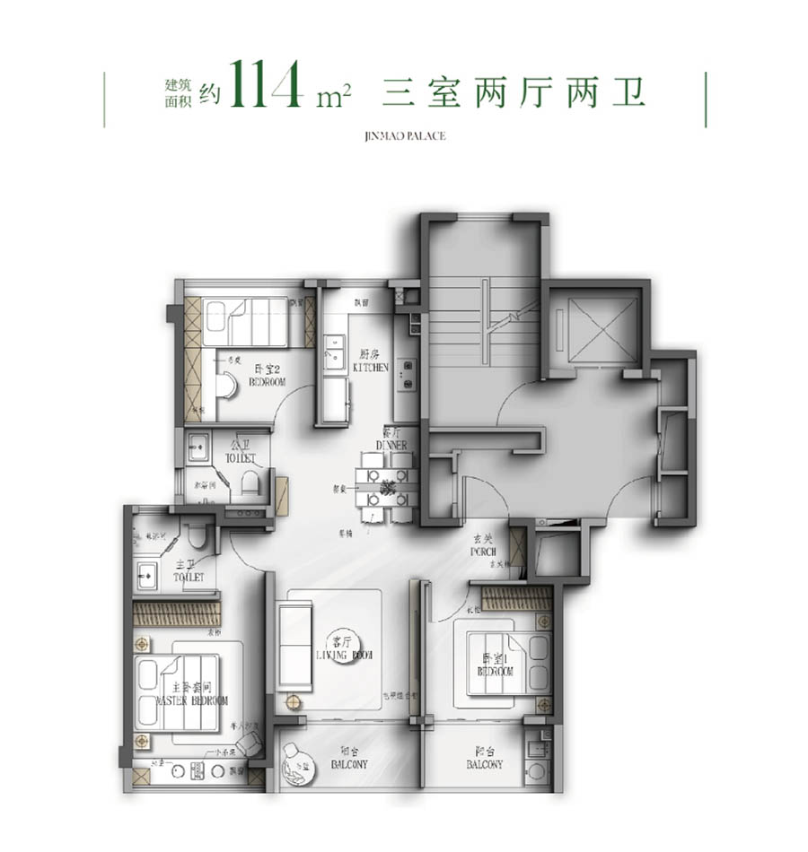 甄选德国威能地暖、方太智能厨电、科勒卫浴等全球顶配,搭载金茂府系独有健康科技系统,PM2.5过滤、新风除霾、静音降噪等6大科技体系,以约5000元/㎡精装标准,匠造从入户门锁到智能家居的全维品质生活。