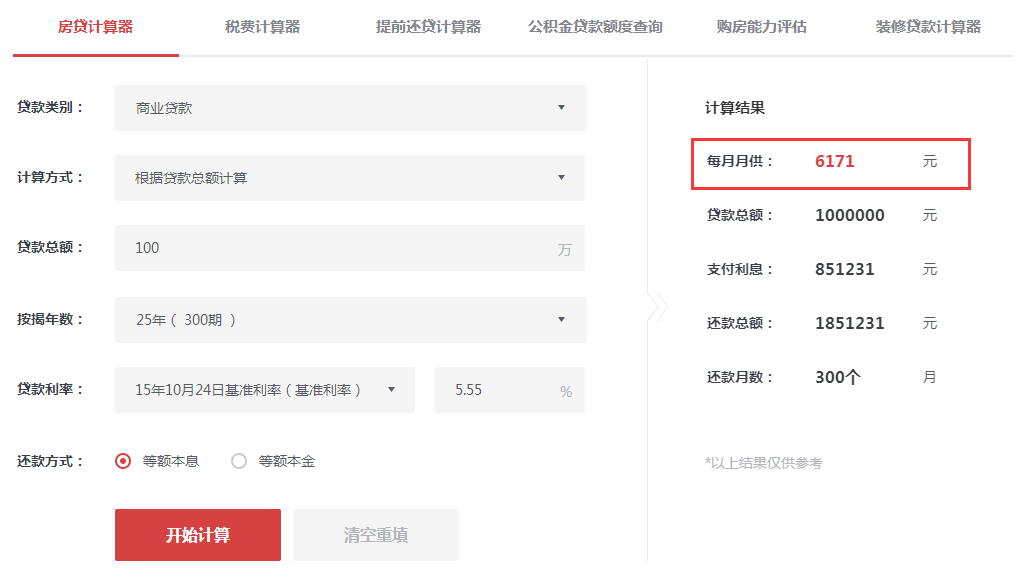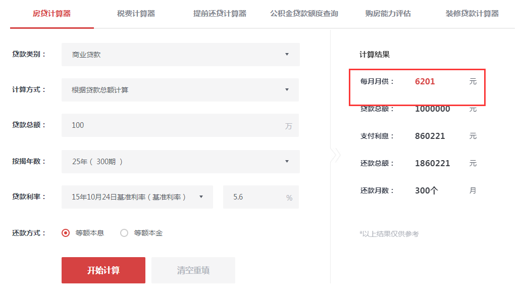 可以看到,100万的贷款,按揭25年,调整前,每月需还款6201元,