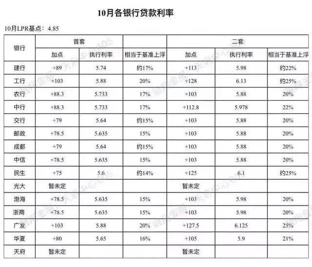 早在上个月8号(10月8号),成都各银行公布了10月住房最低贷款利率。