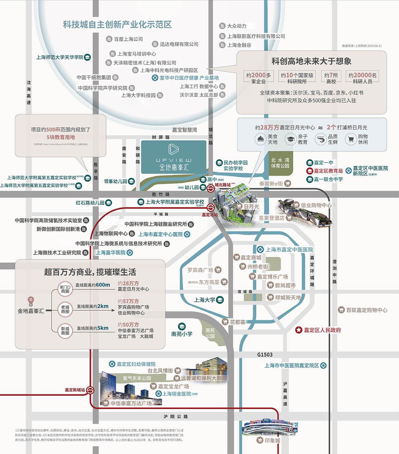 地处嘉定新城黄金地段,集合商业、教育、医疗、生态、科技等多维配套一体。步行五六百米的距离就是桃李园学校、中科院实验学校、嘉定日月光商场;两公里内享嘉定中心医院、陈家山公园、罗宾森购物广场等各种生活配套。