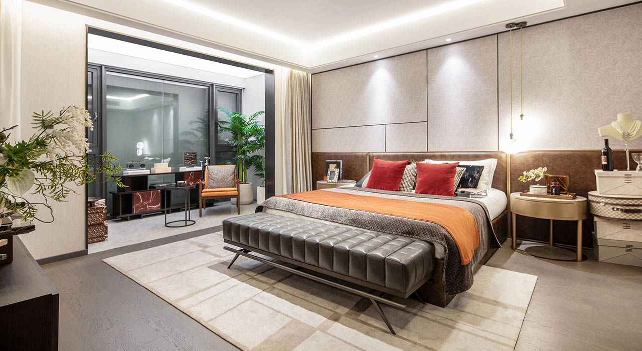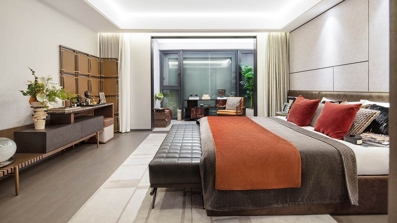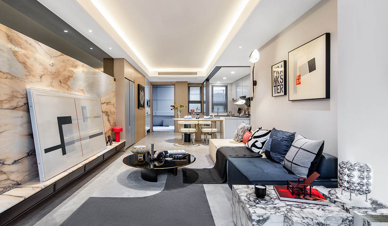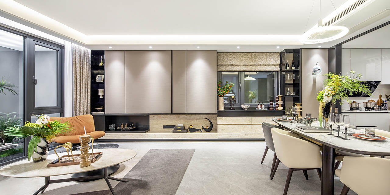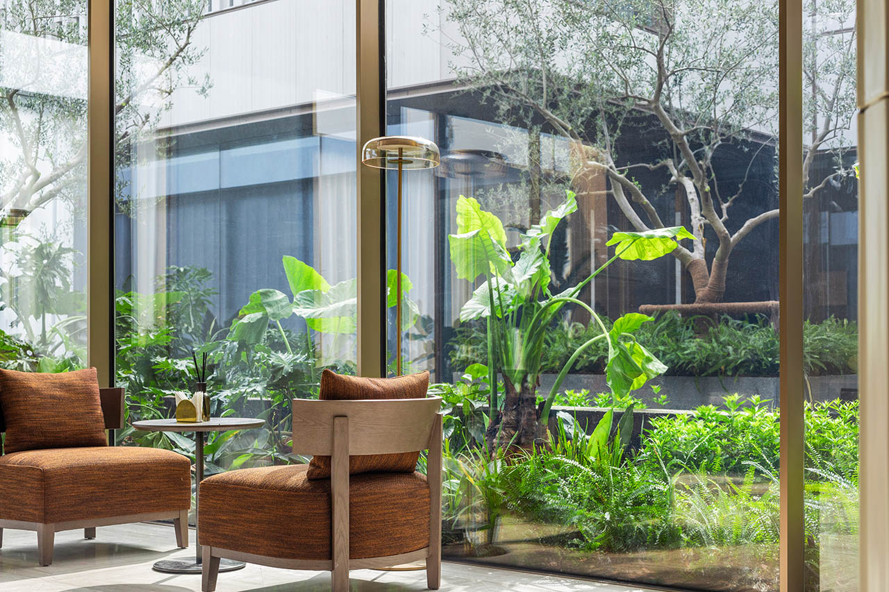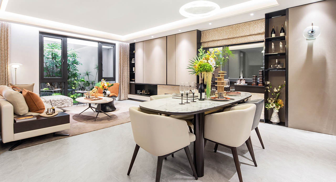 以上海属地元素为灵感,采用轻奢雅致的大理石结合大气线条,将建筑与外部景观无界链接。乌桕林围合出天然的林下会客空间,削弱喧杂的城市环境,营造缓慢而干净的生活场景,丰富的廊架空间,在宁静之中创造纯粹社交的户外空间。