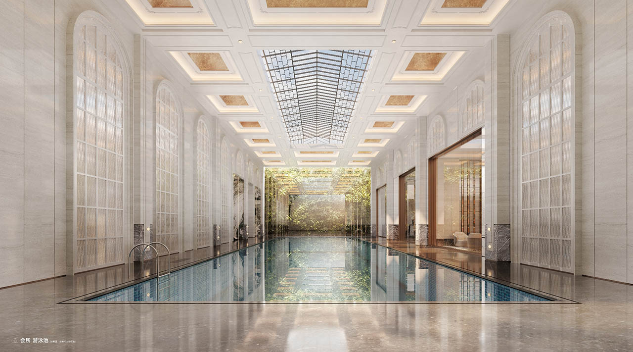 配置会所空间,合计面积约2700㎡,户均近10㎡的会所面积(295户),远远超过主流均值。会所设计提取了华尔道夫酒店的精神气质,极致的空间布局、精致的装饰细节以及光影的巧妙运用,营造出一种尊贵感、尺度感、气势感及氛围感。