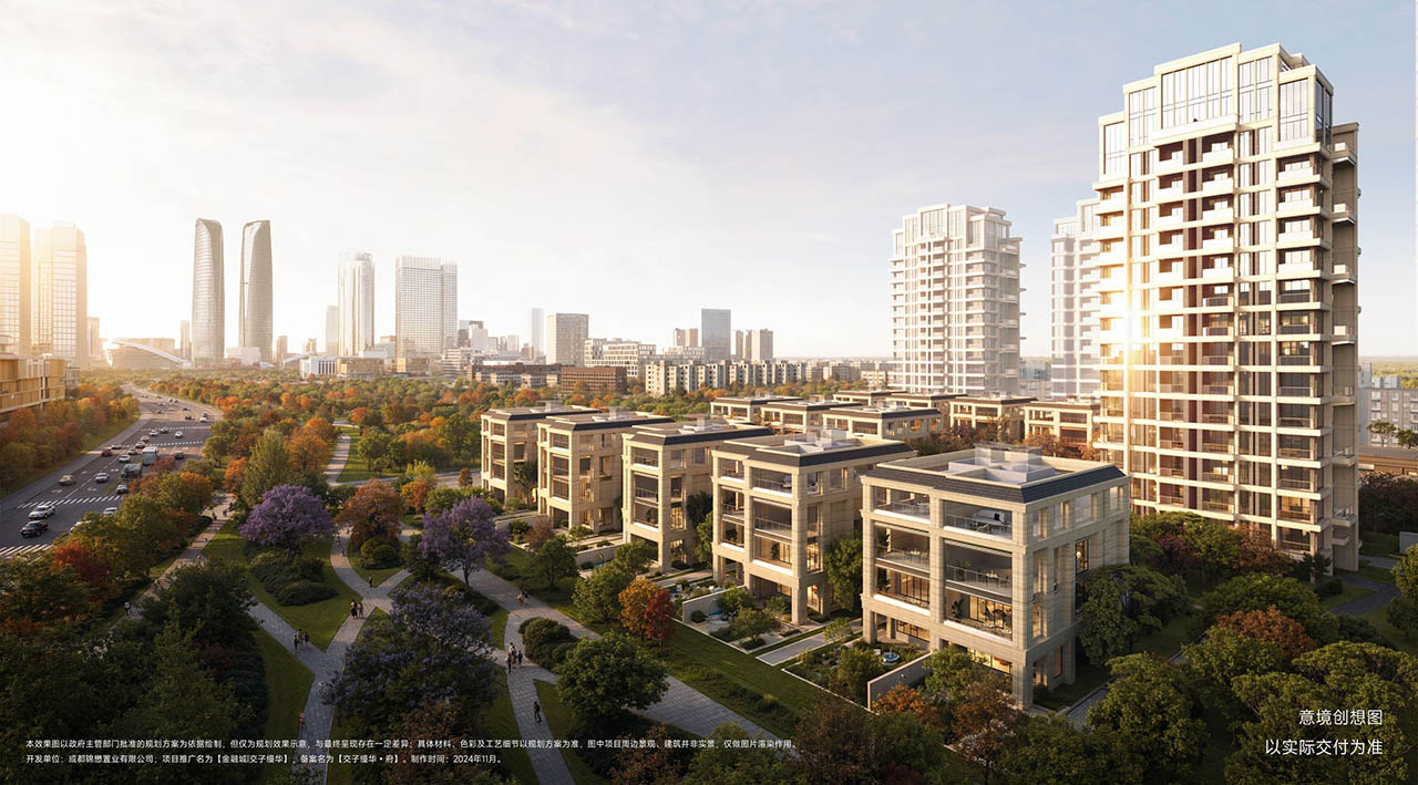 矗立于金融城东、无界交子绿廊,约500米直抵交子公园,紧邻林家坝TOD,这与国际顶壕的站位一脉相承:金融中轴之上、中央公园之畔,在城市的经济心脏,不仅有城市中心金融城,还近享金融城楼市未来的最后一块“价值区域”。
