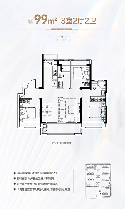 咨询专线:目前有99平的三房在售,具体房源信息,欢迎来电咨询哦~