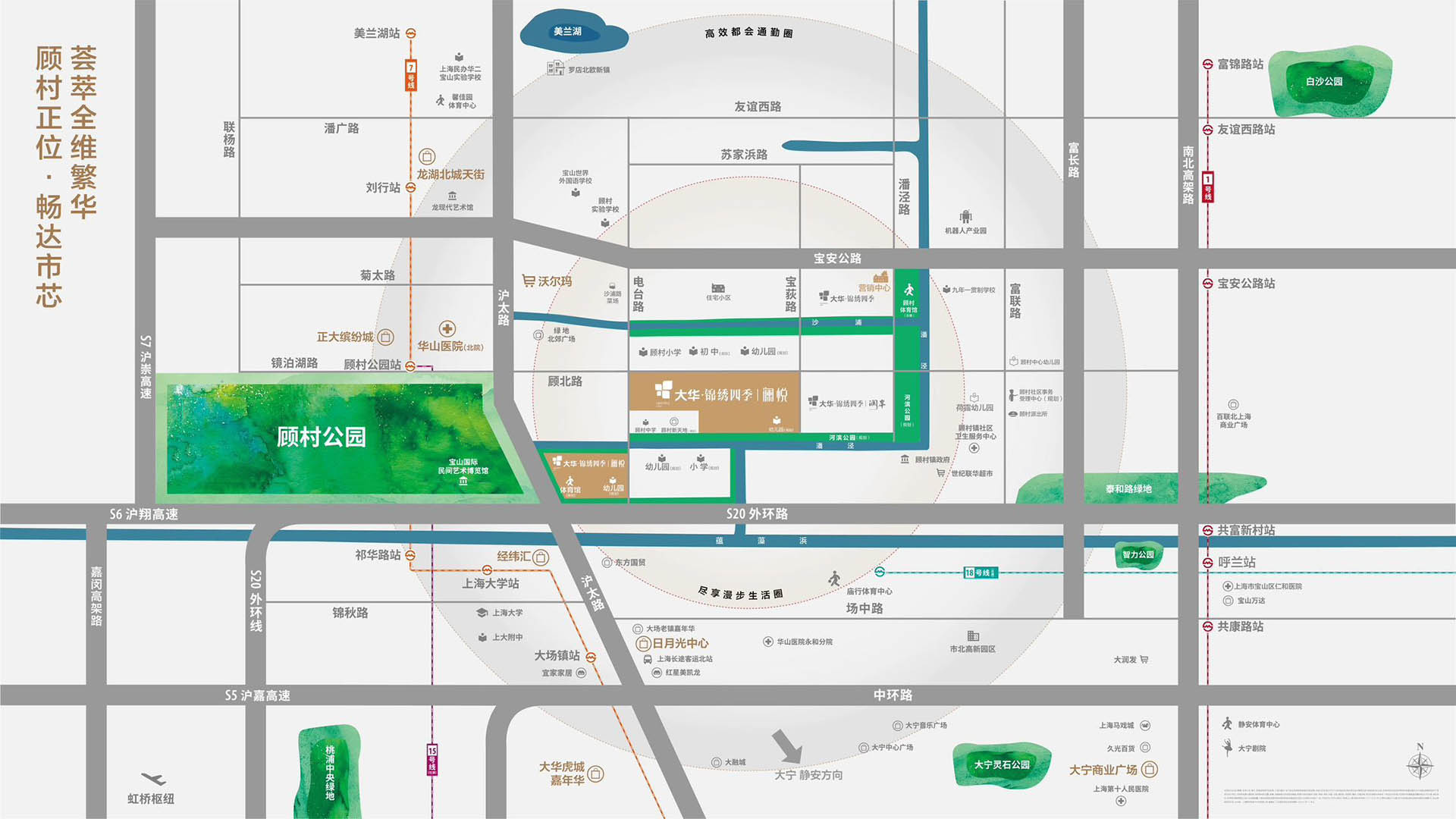 都荟生活有很多种想象,都能在大华锦绣四季找到兑现之地。集萃世外学校、顾村科技园学校(九年一贯制)等11所精英学府;坐拥地铁1号线、7号线和15号线等轨交以及多条公交线路;就近就享受到知名医院的医疗保障。