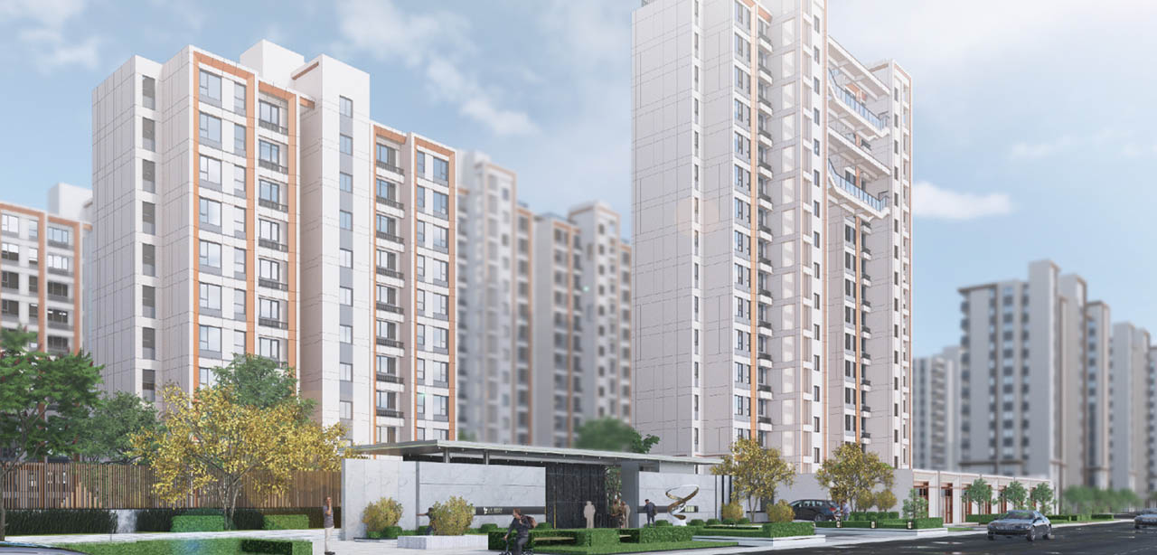 「大华锦绣四季」是一个约90万㎡超大体量的整体片区城市更新项目,建成后将是一座集开放式街区、大型社区公园、生态氛围、优质教育、多业态配套的北上海都荟生活范本,建筑设计上,延续了之前批次大方、典雅、时尚的现代简约风格,立面由米黄色涂料、局部铝板和石材组成,整体线条感强,简约而有质感,优雅自成经典,树立彰显城市品位的标杆社区形象。